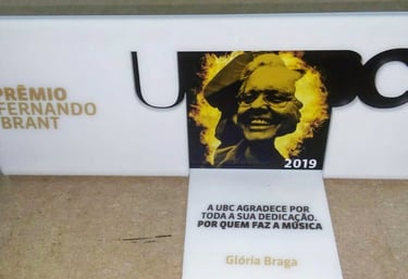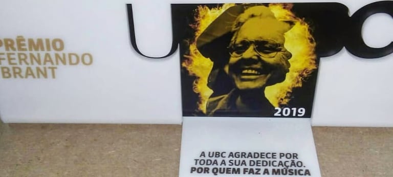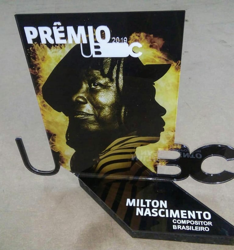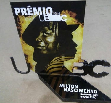 Este troféu, desenvolvido para o "Prêmio UBC" (União Brasileira de Compositores), é uma peça concebida para homenagear ícones da música brasileira. A criação é um tributo visual e material à arte e ao legado, especialmente evidenciada pela figura central de Milton Nascimento.