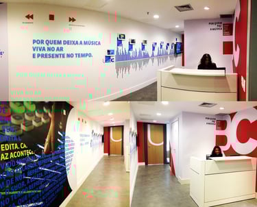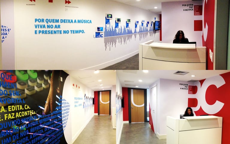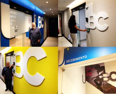Modernidade e Conectividade: Os quadrados e o design geral indicam um escritório que está atualizado, conectado e talvez com processos eficientes.