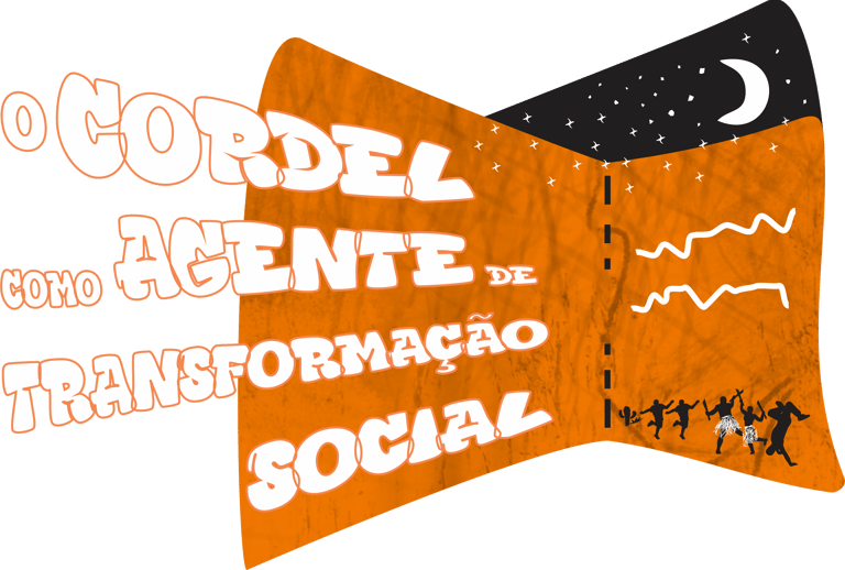 Além disso, a parte mais impactante da frase que diz "COMO AGENTE DE TRANSFORMAÇÃO SOCIAL”, quando associada à imagem de pessoas dançando ou em movimento sob a lua e as estrelas, e as linhas sinuosas que podem representar caminhos ou mudanças, transmitem a ideia de dinamismo e de que o cordel é um catalisador para a mudança.